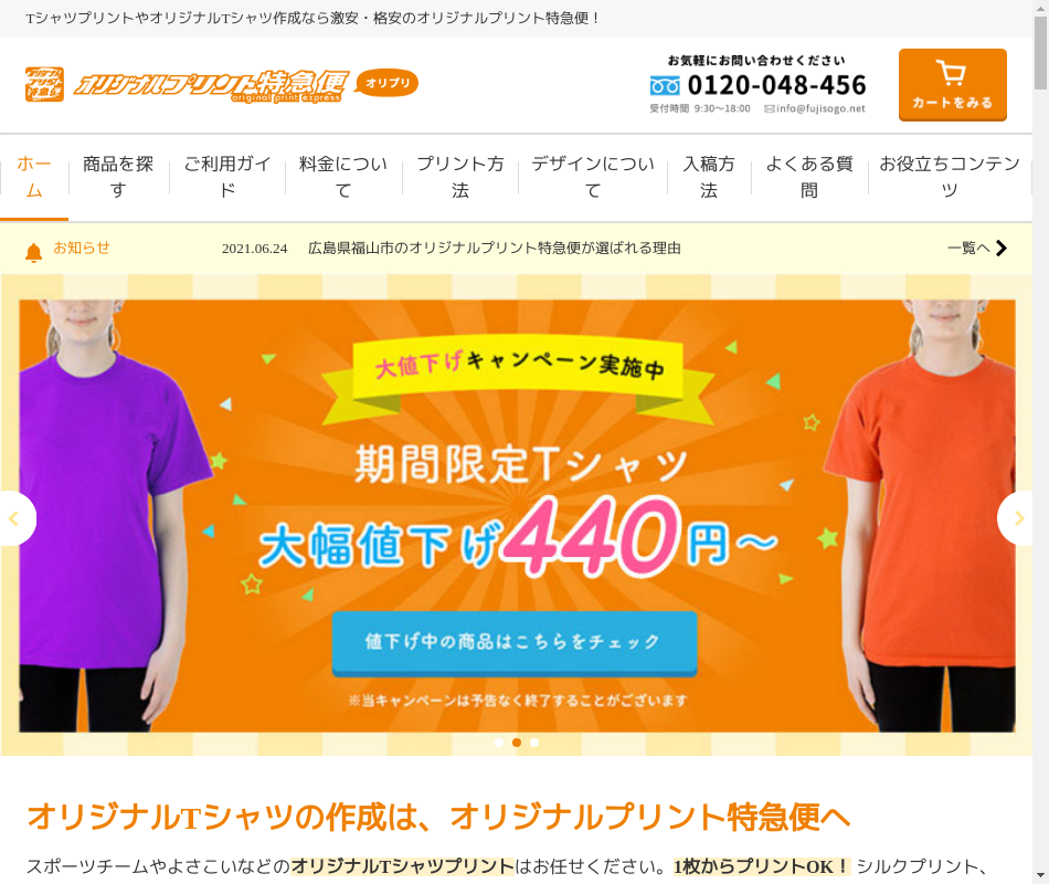ホームページにてオリジナルデザインのプリントの受注・販売