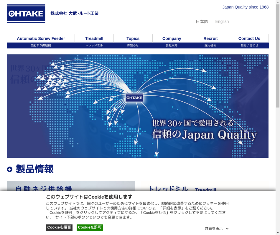 | 事業内容 | 小型産業機器(ネジ供給器)スポーツトレーニング及び医療用トレッドミルの製造販売。産業機は40ケ国以上に輸出しており、国内外の展示会に出品しております。 |