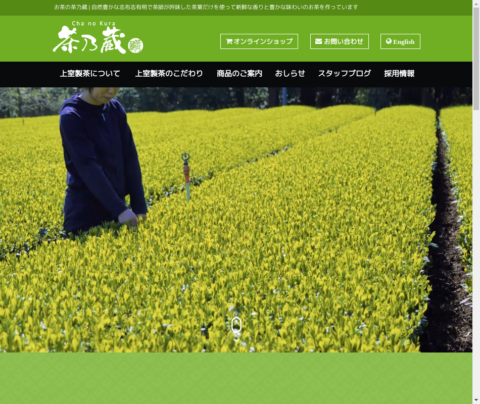 | 事業内容 | 緑茶(煎茶・抹茶)栽培・加工 大麦若葉栽培・加工施設野菜(ピーマン)栽培 |