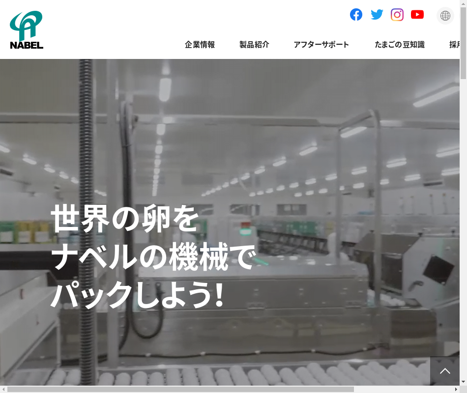 株式会社ナベルは、全自動鶏卵選別包装システムを日本で初めて開発したメーカーです。店頭できれいな姿で並んでいる大半の鶏卵がナベルのシステムでパッキングされています。 ナベルは、これからも『世になきものづくり』に挑戦し、人々に、心からよろこばれる製品をお届けしたいと考えます。