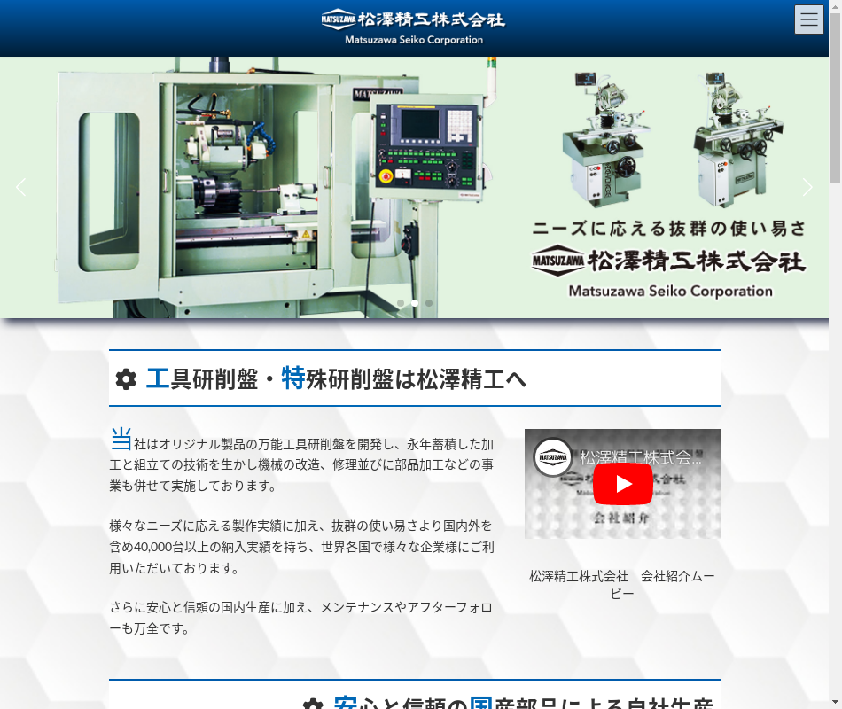 | 事業内容 | 工作機械、専用機械製造業。万能工具研削盤製造、金属部品加工業、お取引先:住友電装、ナブテスコ、山善、ユアサ商事等 |