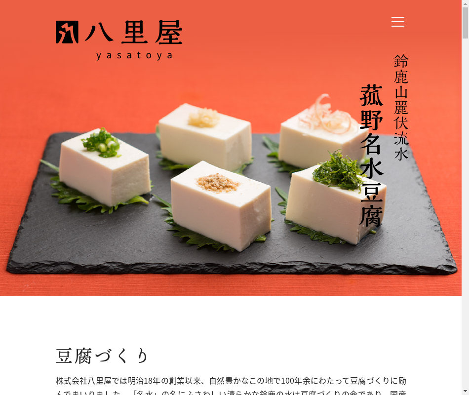 | 事業内容 | 国産大豆100%の原料を使用して豆腐、揚げ出し豆腐を主に製造しています。創業以来伝統の味・こだわりに加え、一貫して本物の豆腐づくりに取り組んでいます。 |