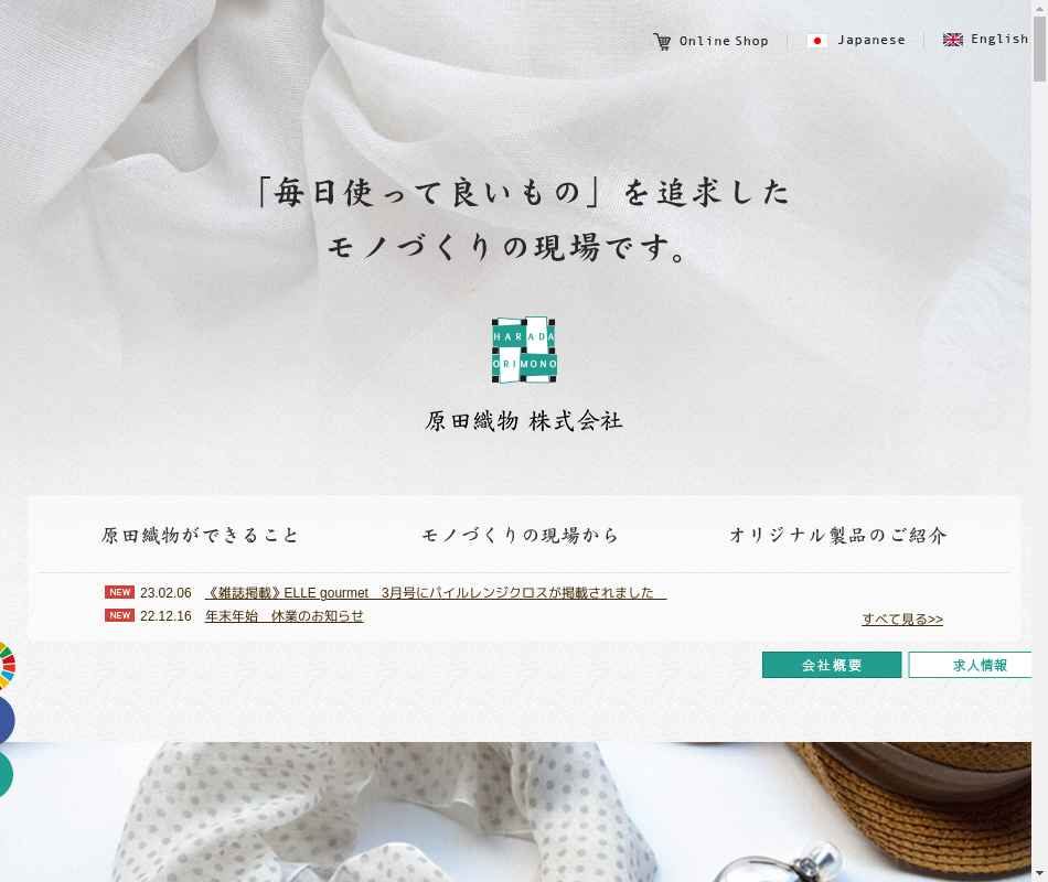 | 事業内容 | ランチマット、フキン、ボディタオル、ハンカチ等の製造 |