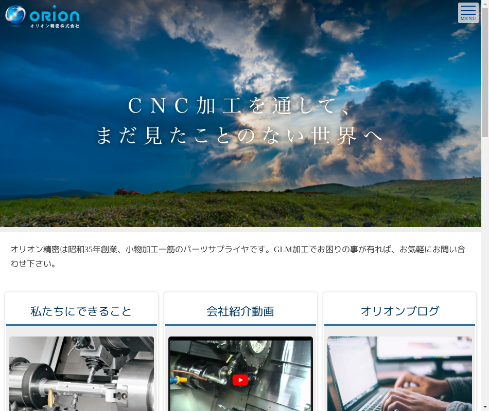 | 事業内容 | 精密機械加工のスペシャリストとして国内トップメーカー各社様より受注があり、自社生産管理システムとコンピュータ制御の複合加工機による機械部品の無人精密加工を行うパーツサプライヤです。 |