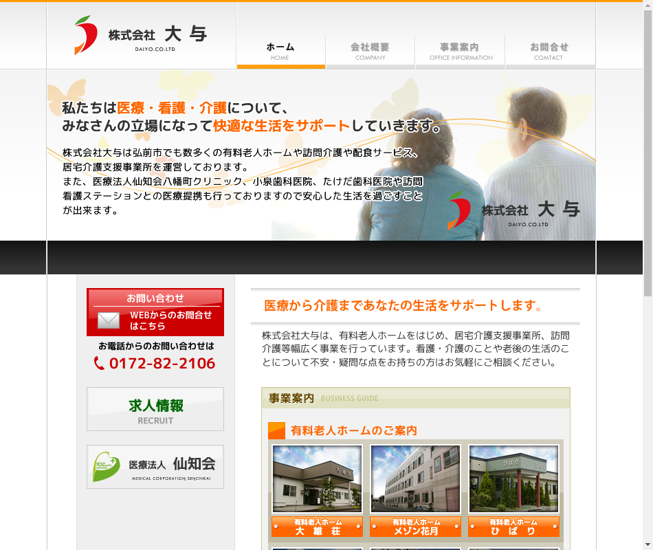 事業内容 | 住宅型有料老人ホーム、居宅介護支援事業、訪問看護事業、訪問介護事業 |
