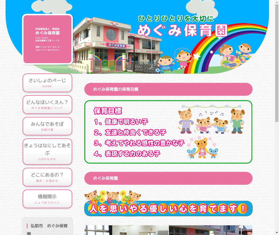 事業内容 | 地域に根差し、地域に必要とされる保育園として、産休明けから小学校就学までお預かりしています。障害児保育、延長保育、一時預り子育て支援活動等に取り組んでいます。 |