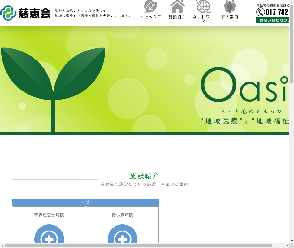 継続的、包括的なケアを目的とし、さまざまな事業体で構成する「医療福祉ネットワーク」のもと、思いやりの心を持って地域に密着した医療と福祉を実践しております。 【当会の事業所】 ○青森慈恵会病院 ○青い森病院 ○ユニット型介護老人保健施設 青照苑 ○デイケアセンターさくら ○疾病予防施設 慈恵クリニック ○グループホームあおいもり ○グループホーム新城 ○青森市地域包括支援センターのぎわ ○じけいかい訪問看護ステーション ○じけいかい居宅介護支援事業所 ○小規模多機能型居宅介護事業所オアシス ○小規模多機能型居宅介護事業所のぎわ ○小規模多機能型居宅介護事業所しんじょう ○じけいかい定期巡回随時対応型訪問介護看護事業所 〇合浦デイサービスセンター 〇グループホームこばし 〇デイサービスセンターこばし