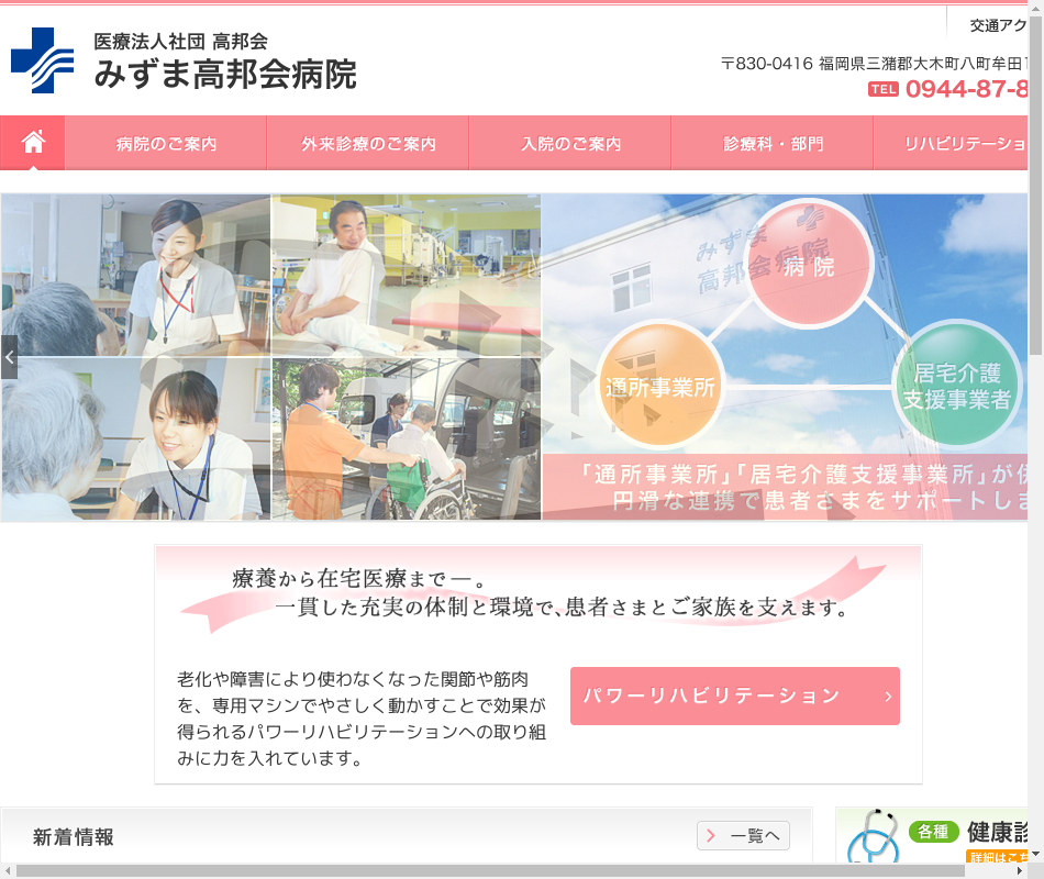 | 事業内容 | 昭和2年開業、現在、内科・外科・消化器内科・呼吸器内科・人工透析内科・リハビリテーション科の診療科目で地域医療の中核病院として医療を行っています。 (三潴町) |