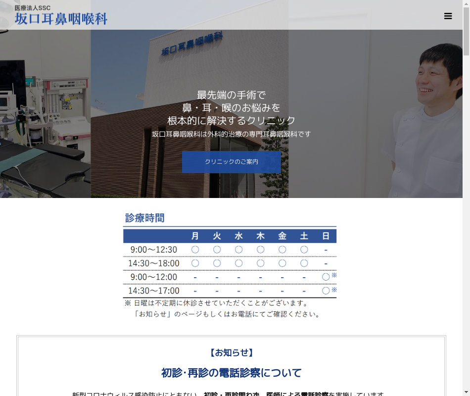 | 事業内容 | 一般診療所耳鼻咽喉科、形成外科、アレルギー科、気管食道外科 |