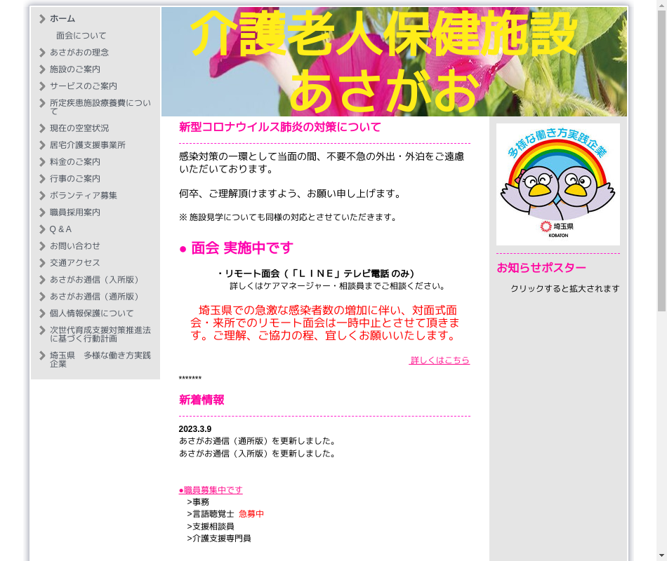 | 事業内容 | レジデンシャル小手指Sakuraは、サ高住(58部屋)と4つの在宅介業事業所(居宅介護支援、デイサービス、訪問ヘルパー×2)からなる施設です。 |