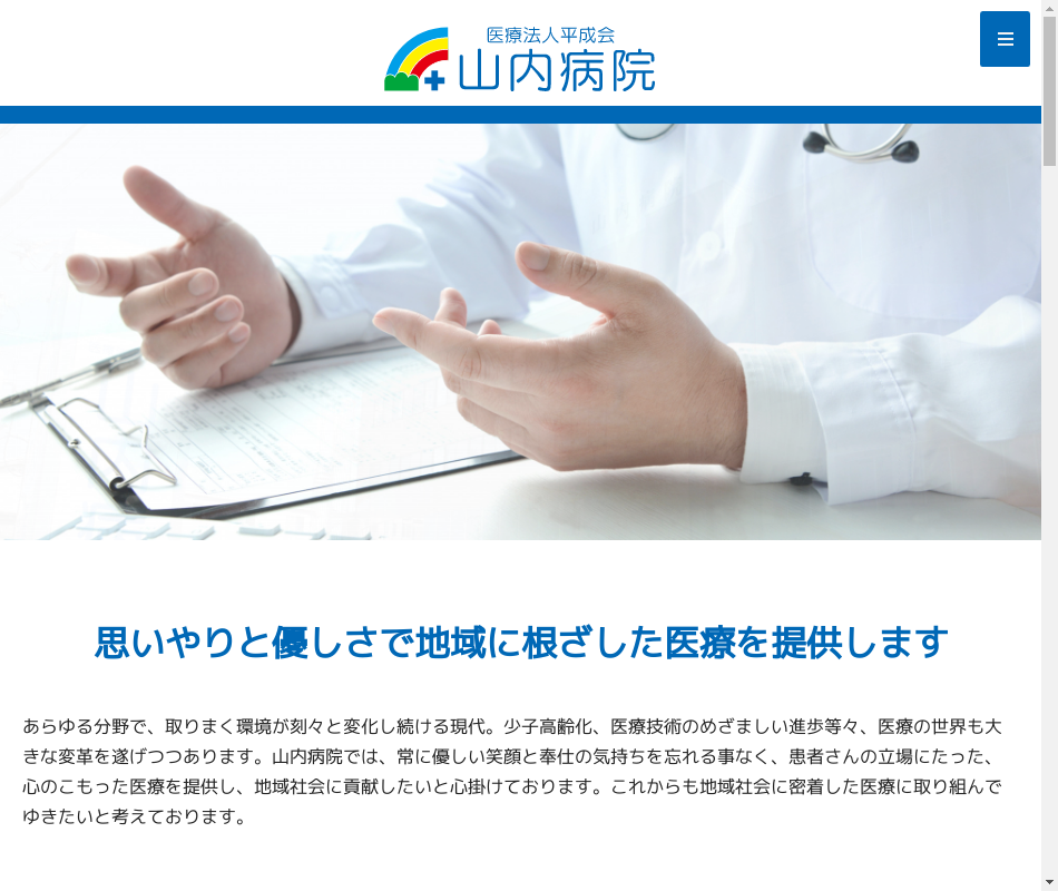 | 事業内容 | 病院50床 介護保険事業(グループホームほっとやまうち、デイケア、デイサービスふれあい、訪問看護、居宅介護支援サービスやまうち、定期巡回・随時対応型訪問介護看護 |