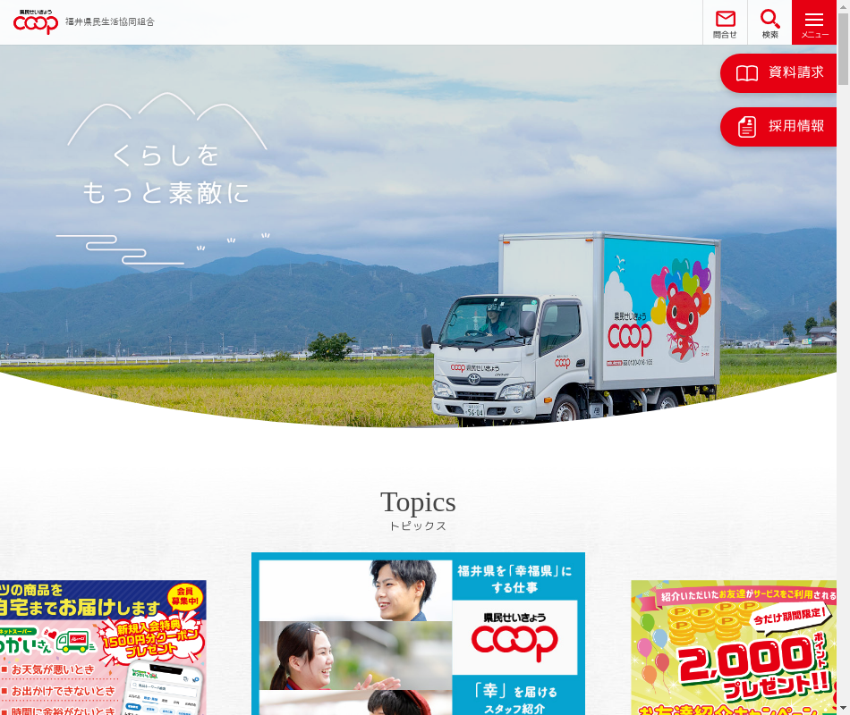 | 事業内容 | 宅配事業(コープの宅配)・店舗事業(ハーツ)・高齢者介護事業(きらめき)・生活支援事業(ハーツ便など)・子育て支援事業(ハーツきっず)・共済事業(COOP共済) |