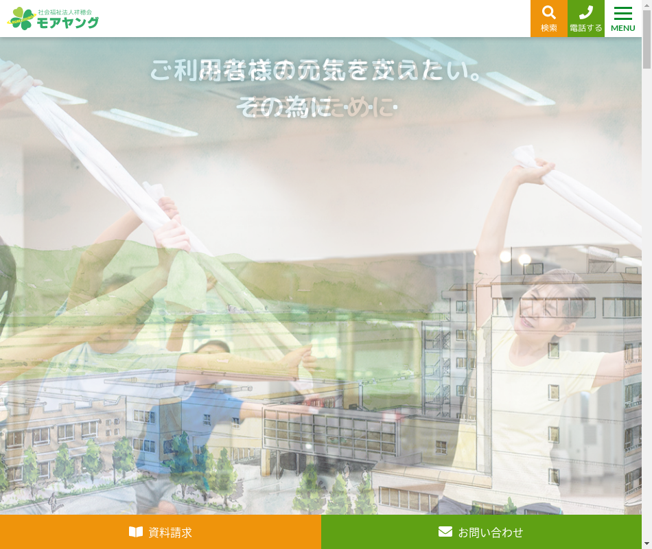 | 事業内容 | モアヤングは、住みやすい環境の中で高齢の方ができるだけ自立した生活を送り、家族や仲間と健康で楽しい日々を過ごしていただけるよう支援する施設です。 |