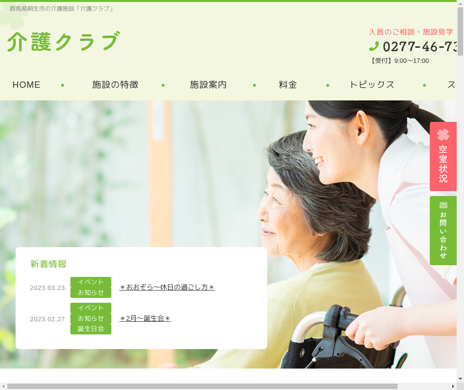 事業内容 | 『住宅型有料老人ホーム』『デイサービスセンター』『(施設内)訪問介護』を併設しております。 |