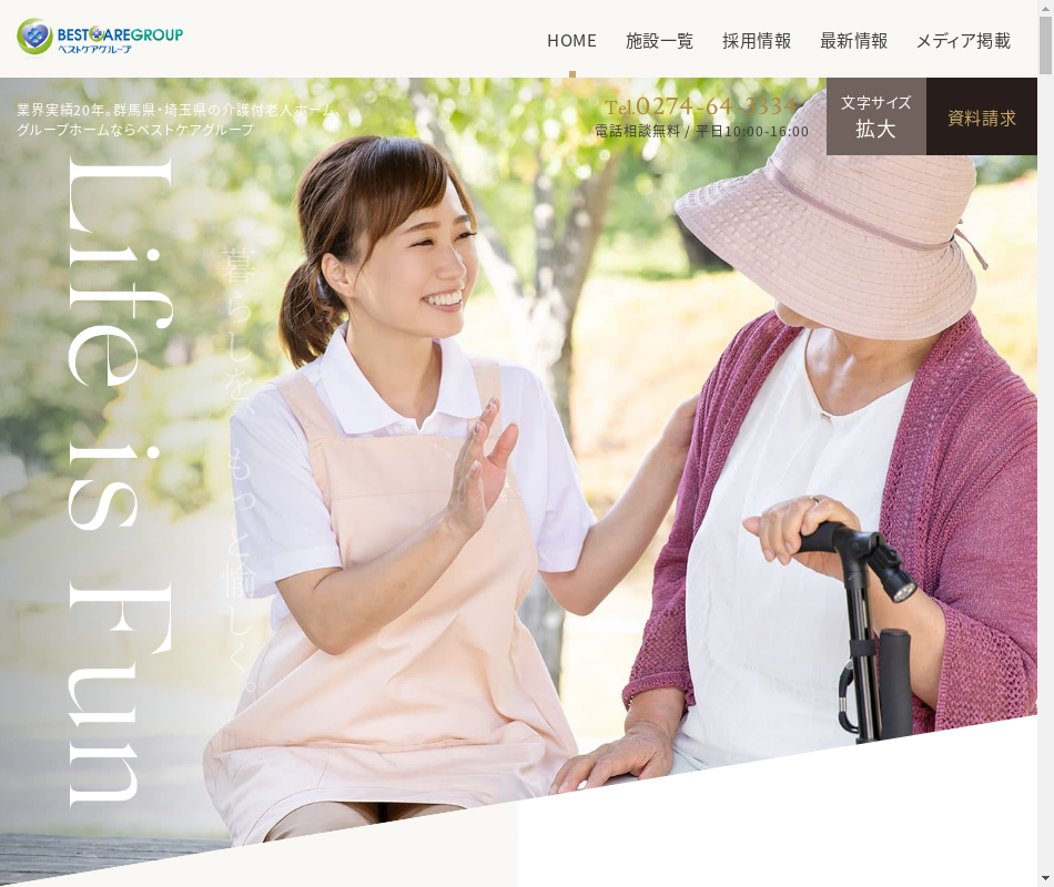 高齢者介護事業運営を手掛け、ベストケアグループ全体で群馬県・