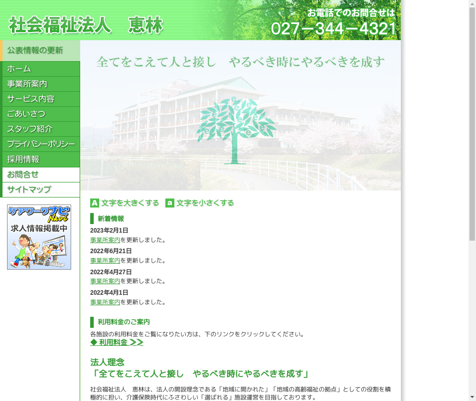 介護部門:あけぼの苑、あけぼの苑高崎、総合ケアセンター榛名荘