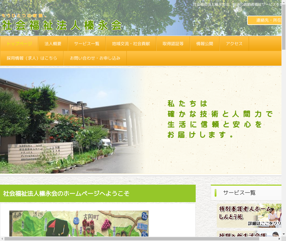 事業内容 | 特別養護老人ホーム80床(長期70・短期10)を中心とした老人福祉施設。デイサービスセンター・ケアハウスを併設。 |