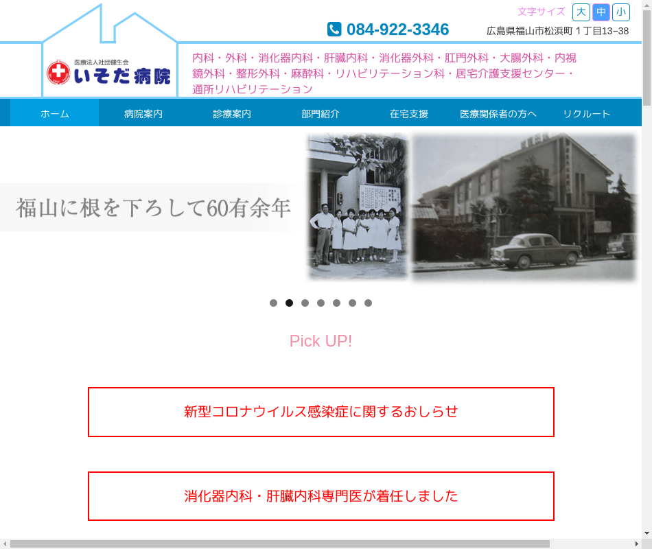 事業内容 | 一般病床41床 診療科目:内科・外科・消化器内科・肝臓内科・消化器外科・肛門外科・大腸外科・内視鏡外科・整形外科・麻酔科・リハビリテーション科・通所リハビリ・居宅介護支援事業所 |