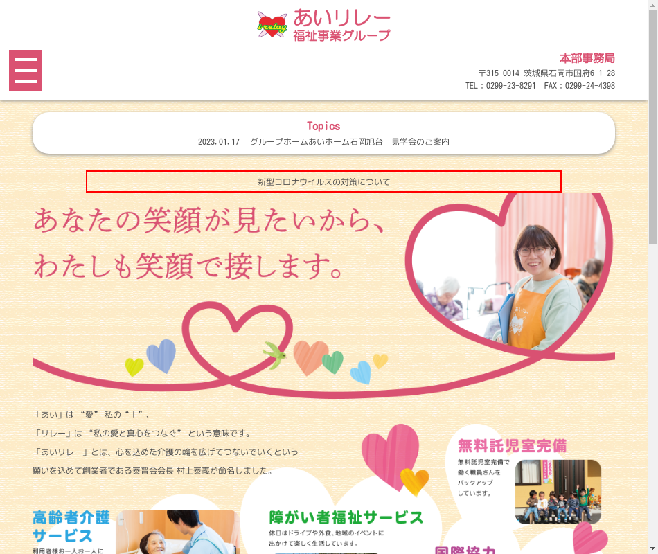 事業内容 | 認知症対応型共同生活介護事業所「グループホームあいリレー石岡」を運営しています。 |