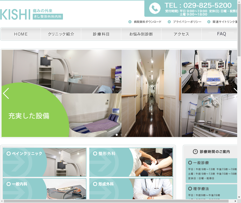 整形外科・皮膚科・リハビリテーション科・内科を診療科目とする