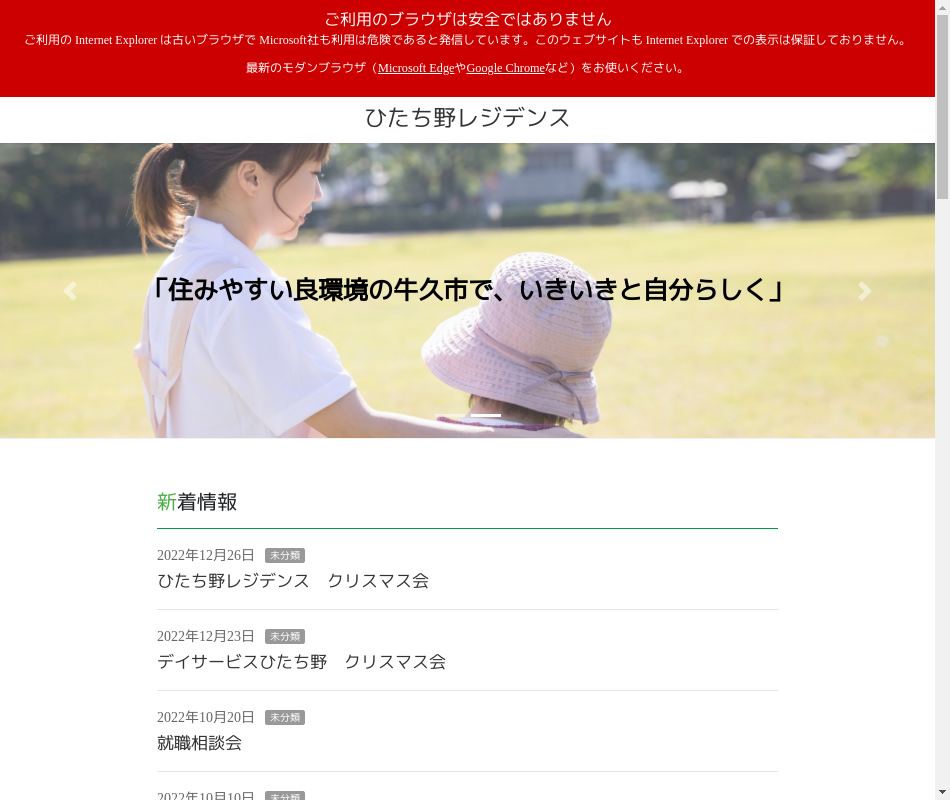 事業内容 | 介護付有料老人ホーム、デイサービス、ショートステイ、訪問介護、居宅介護支援事業所の運営 |