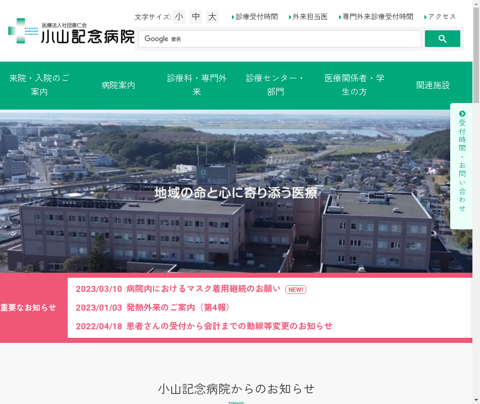 | 事業内容 | 総病床数224。診療科目24。救急二次指定病院。幅広い診療科の他、健康管理センター、透析センター、循環器センターや各種専門外来を開設しております。 |