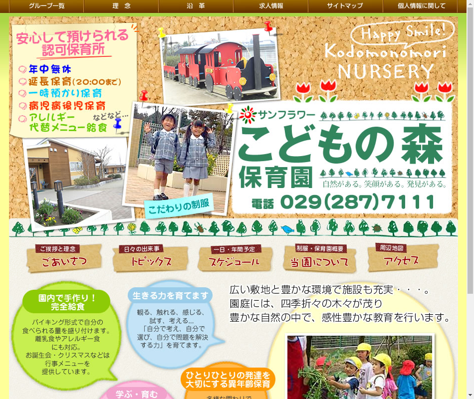 | 事業内容 | 笠間市に所在する定員210名の幼保連携型認定こども園。0歳児から5歳児までの教育・保育施設で、預かり保育や病後児保育、体調不良児保育、子育て支援事業を実施している。 |