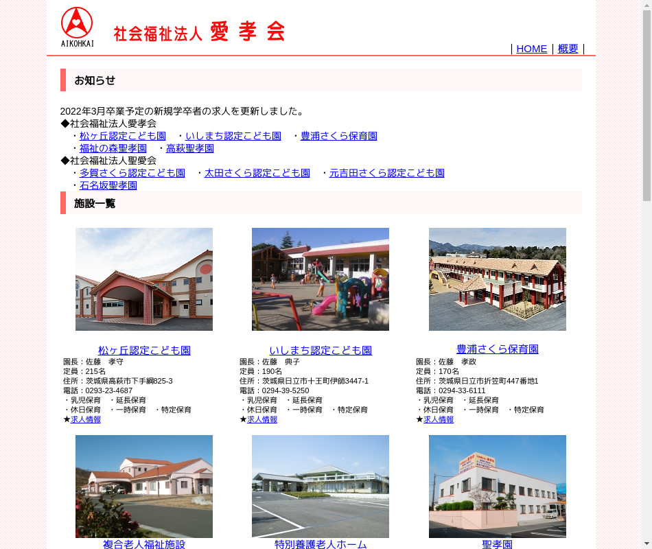 | 事業内容 | 北茨城市を拠点とした老人福祉施設1箇所、障害者福祉施設2箇所(いづれも同一敷地)運営 |
