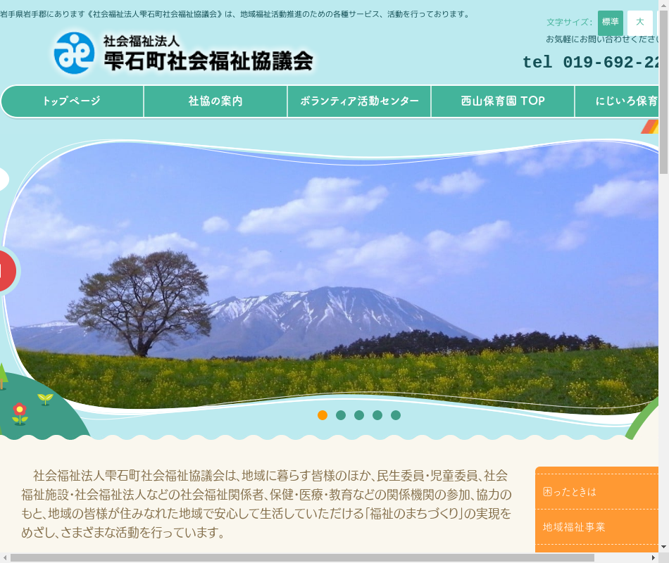 | 事業内容 | 雫石町にあける福祉事業の企画運営、雫石町からの委託事業の実施、介護保険事業、日常生活自立支援事業の実施、福祉団体の事務受託事業他 |