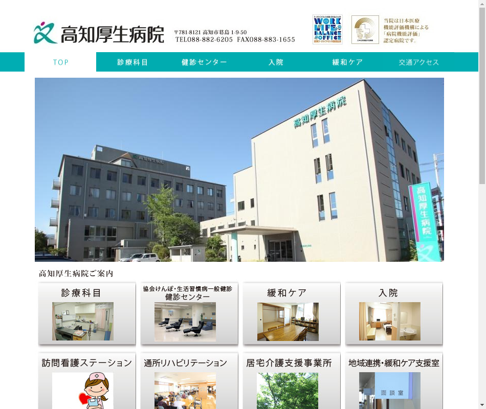 | 事業内容 | 医療業(内科、外科、整形外科、血管外科、心臓血管外科、肛門科、消化器科、循環器科、リハビリテーション科、放射線科、麻酔科、人間ドック)ベッド数138床 |