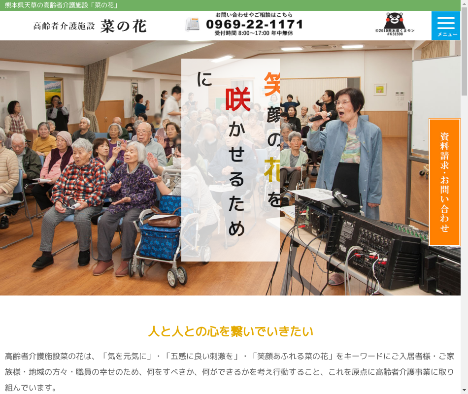 | 事業内容 | 認知症対応型共同生活介護・認知症対応型通所介護、有料老人ホーム、通所介護。併設事業所には認知症対応型共同生活介護、居宅支援事業所、通所介護、苓北事業所では認知症対応型共同生活介護。 |