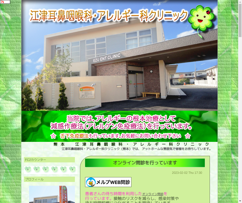 | 事業内容 | 耳鼻咽喉科・アレルギー科の外来診療を行う事で地域住民の健康管理に貢献します。 |