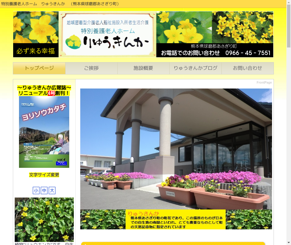 | 事業内容 | 特別養護老人ホーム(定員60名)、特定施設有料老人ホーム(定員60名)、ショートステイ(定員18名)、地域密着型特別養護老人ホーム(定員29名) |