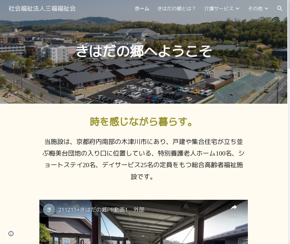 | 事業内容 | 介護保険法に基づく木津川市の指定事業所として、地域密着型通所介護、居宅介護支援を行っている。 |