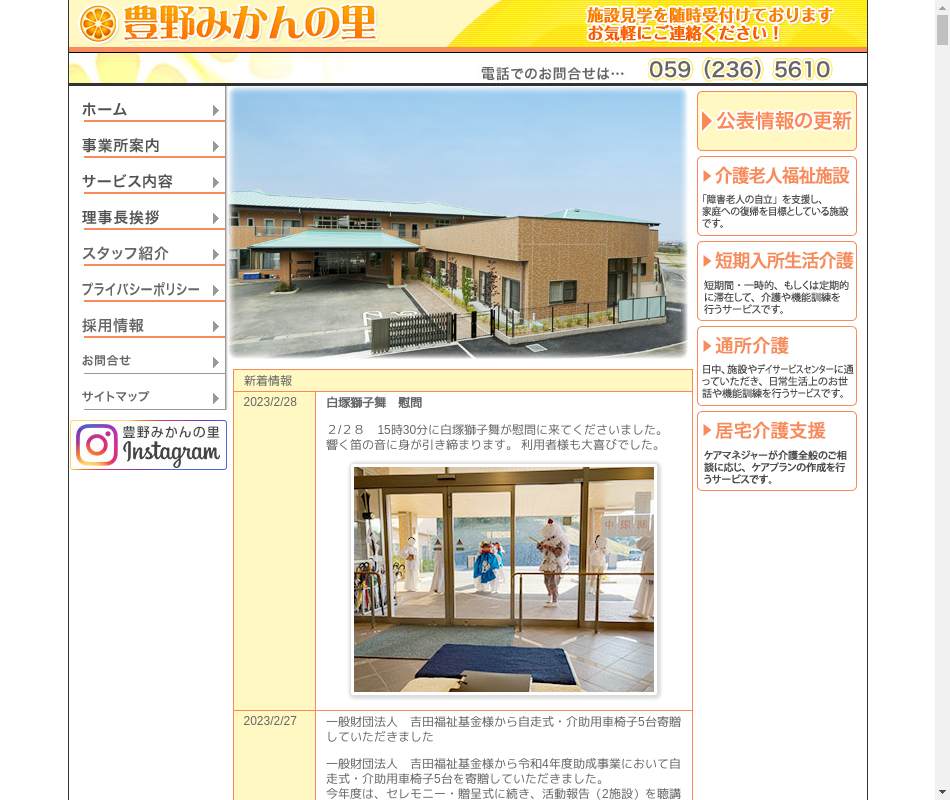 | 事業内容 | 入所定員50人の特別養護老人ホーム、10名のショートステイ事業、デイサービス事業は芸濃町を中心に25名で実施しています。居宅介護支援事業は3名のケアマネが活躍しています。 |