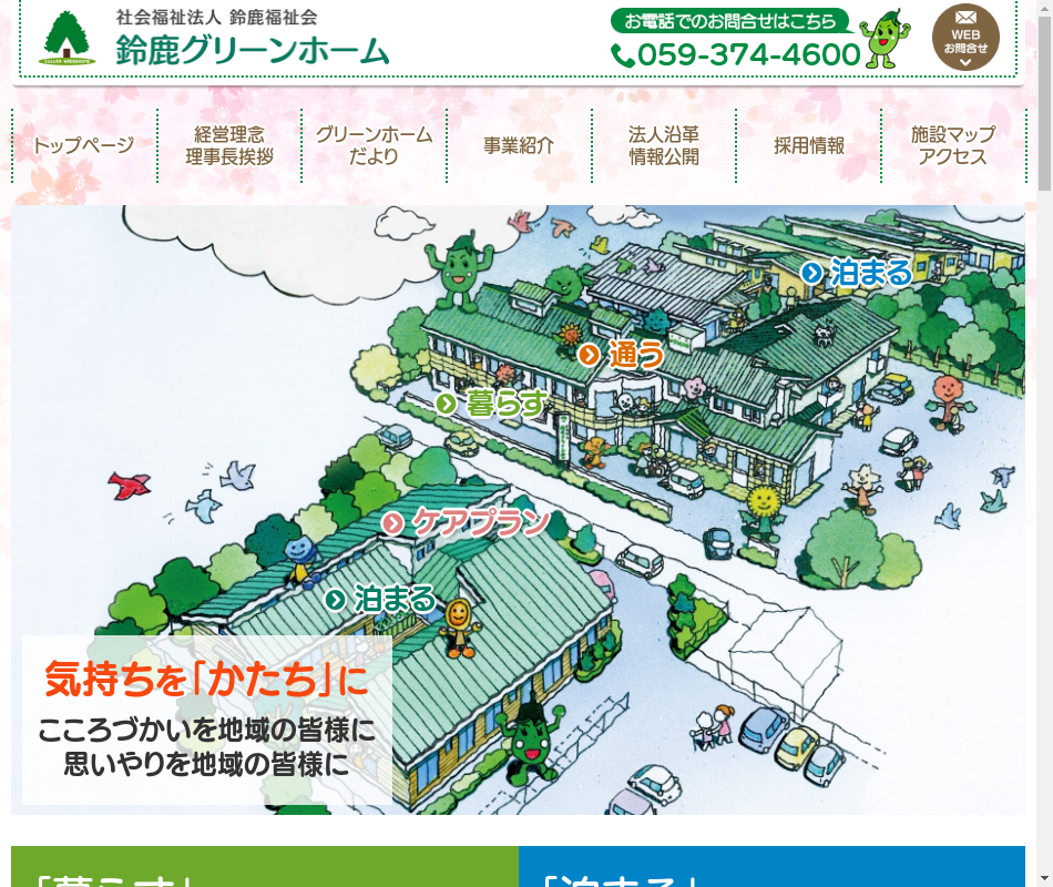 | 事業内容 | 老人福祉施設(デイサービス、ショートステイ)、特別養護老人ホーム、訪問介護、居宅介護支援事業 |