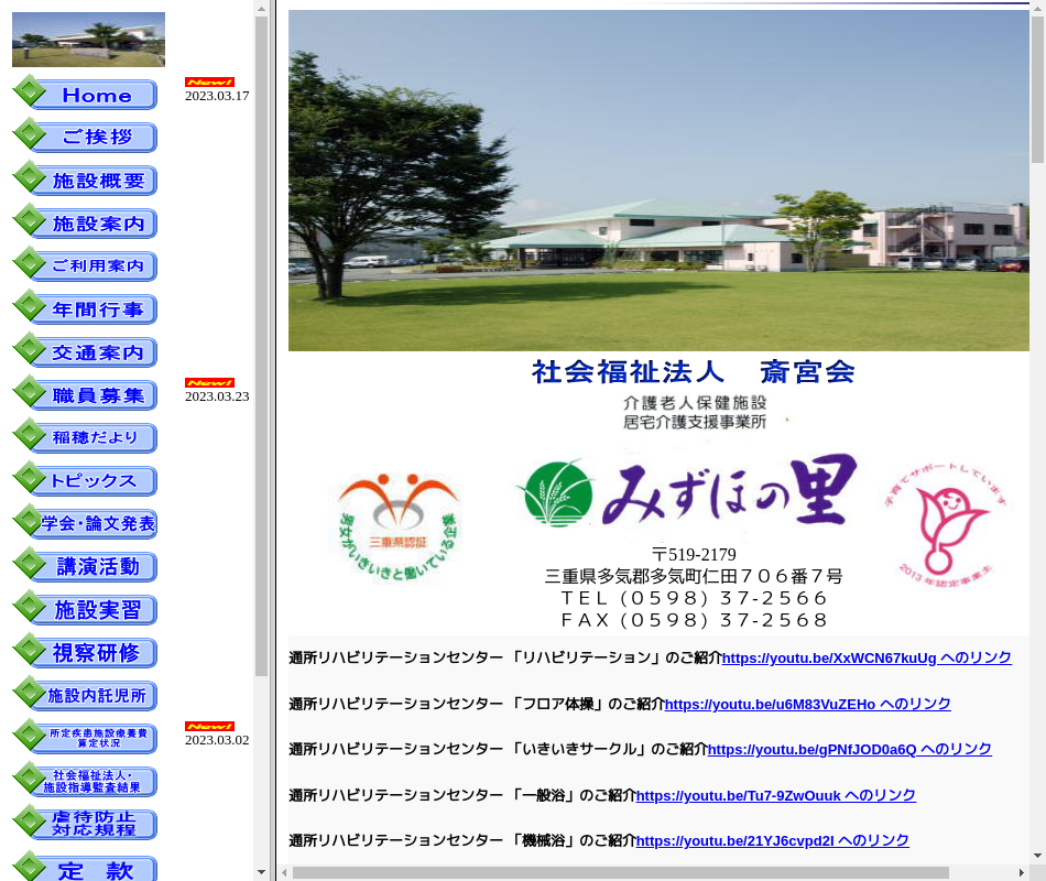 | 事業内容 | 介護老人保健施設みずほの里。介護保険法に基づき、要介護認定を受けられた方を対象にリハビリ訓練を行い在宅復帰を目指します。 |