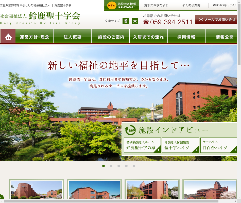 | 事業内容 | 社会福祉事業(老人の介護、看護業務)、グループの事業として特別養護老人ホーム、障害者支援施設、ケアハウス、看護専門字校、三重聖十字病院、聖マリアこども園があります。 |
