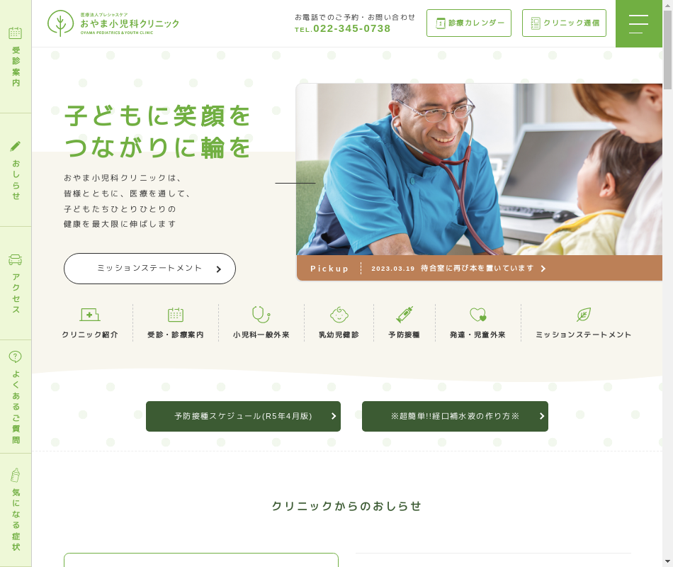 | 事業内容 | 小児科無床診療所一般診療・乳幼児健診・予防接種 |