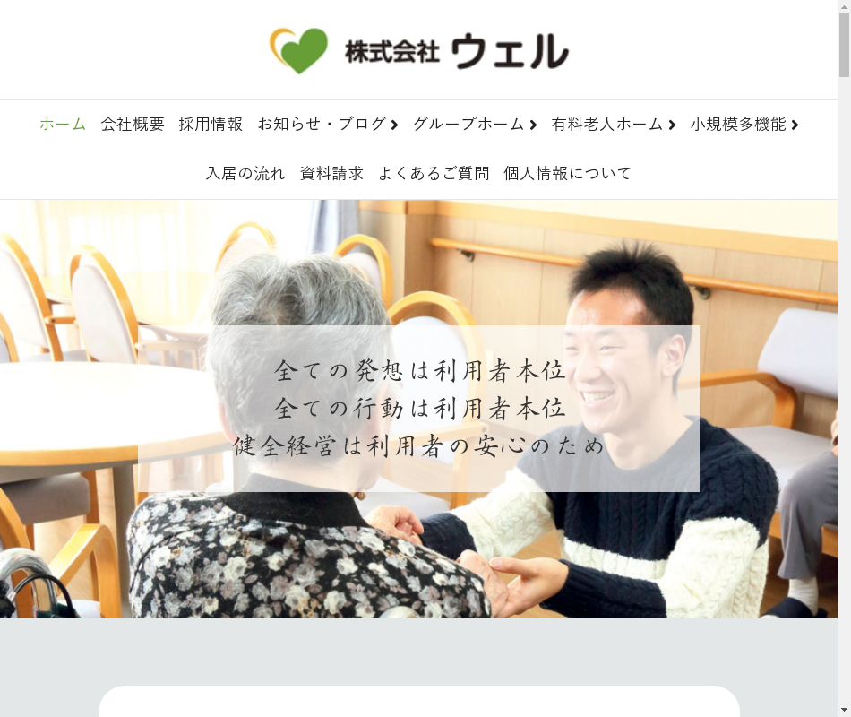 | 事業内容 | 高齢者介護施設の運営。(グループホーム9ヶ所、小規模多機能型居宅介護1ヶ所、有料老人ホーム1ヶ所) |