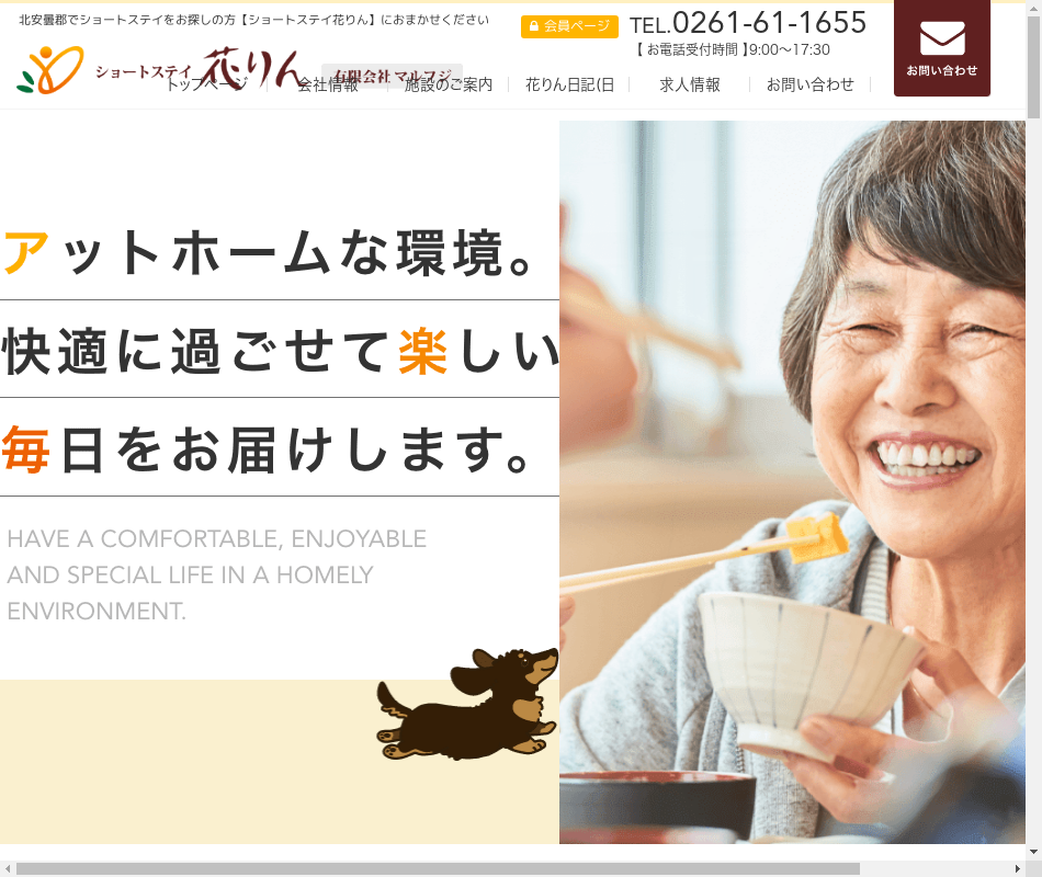 | 事業内容 | ショートステイ20床の介護福祉施設です。介護認定を受けた方が1泊2日から利用されています。季節の食材を取り入れた手作り料理を提供しています。 |