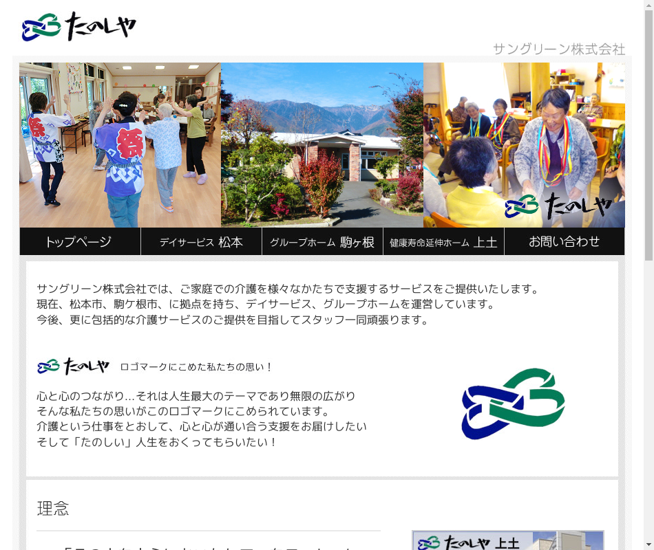 | 事業内容 | 介護事業(デイサービス「なごみ」、有料老人ホーム「こころ」)。建設工事(土木・建築他)の請負施工の事業、不動産事業。 |