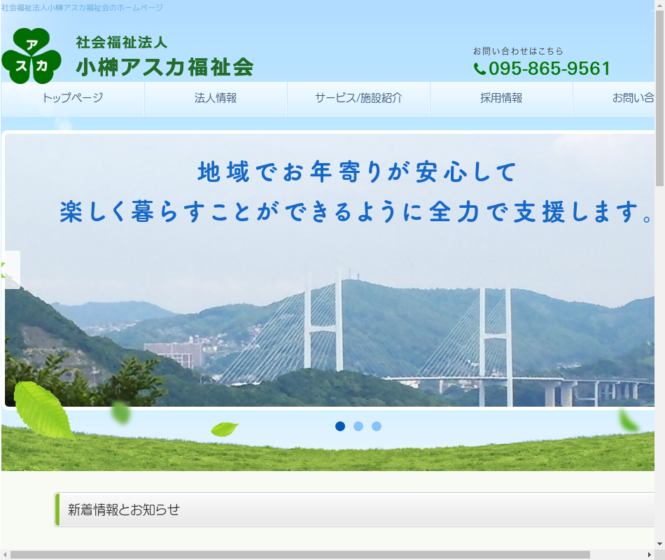 | 事業内容 | 1デイサービスセンターアスカ 2グループホームひばリ 3居宅介護支援事業所 4小規模多機型居宅介護さくら・さくら2 5特別養護老人ホームアスカ 6ショートステイ 7学童クラブ |
