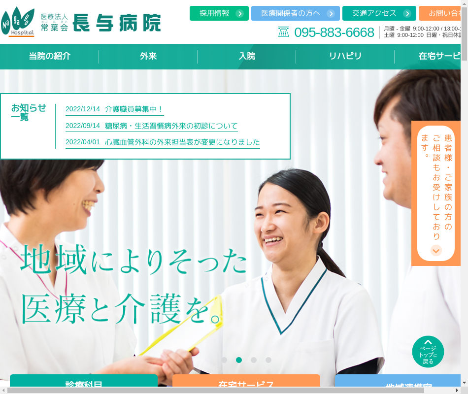 | 事業内容 | 病院(120床) 診療科目:内科・外科・放射線科・皮膚科・リハビリテーショ科・整形外科・心臓血管外科・消化器内科・循環器内科 |