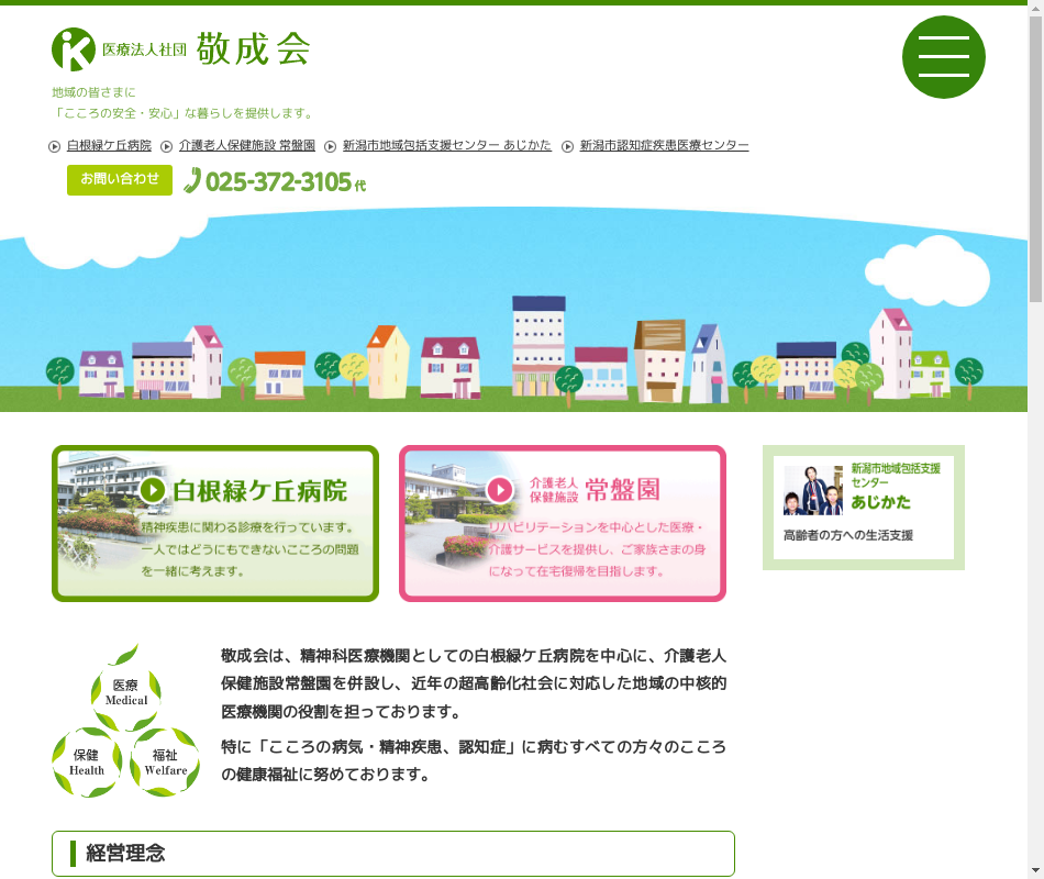 | 事業内容 | 精神科病院、外来及び入院による精神疾患の治療、作業療法、デイケアなどのリハビリテーション、訪問看護、医療相談などの地域支援、介護老人保健施設 |