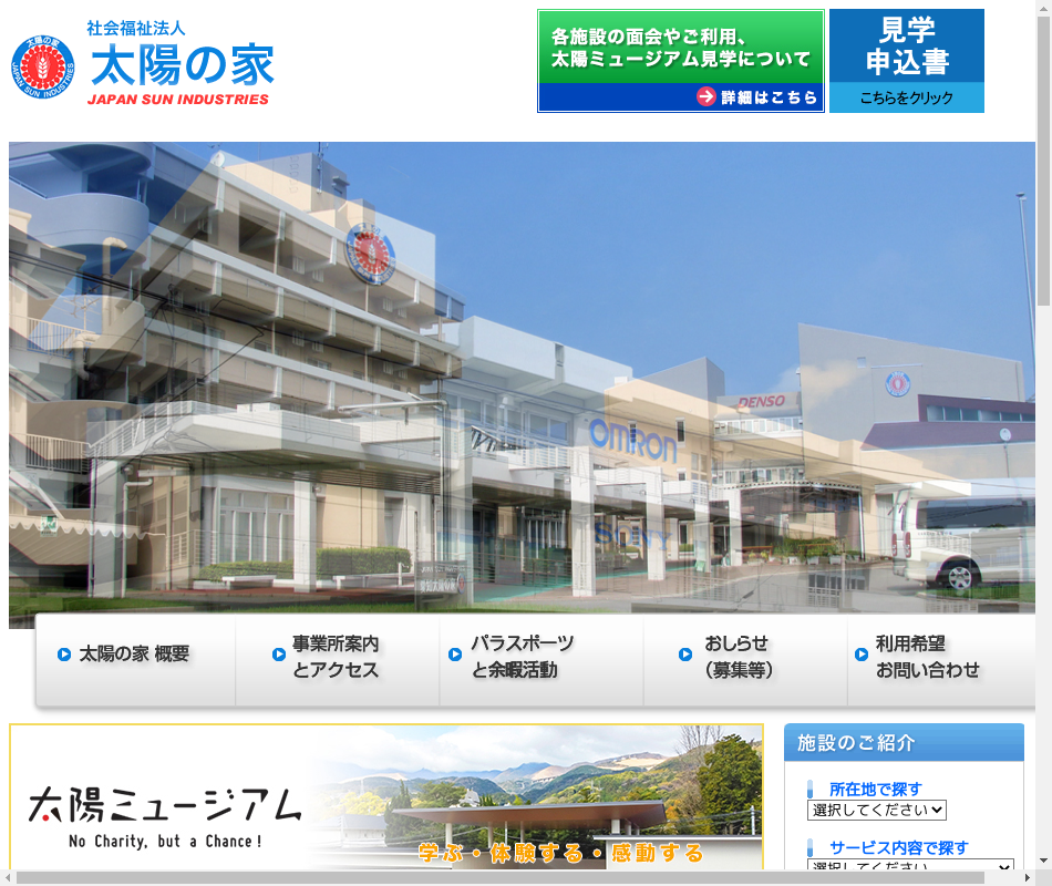 | 事業内容 | 就労継続支援A型・B型を主として、障害福祉サービスを提供する施設。オムロンから受注した制御機器部品の組立、所内の清掃作業、箱入等の軽作業を実施。 |