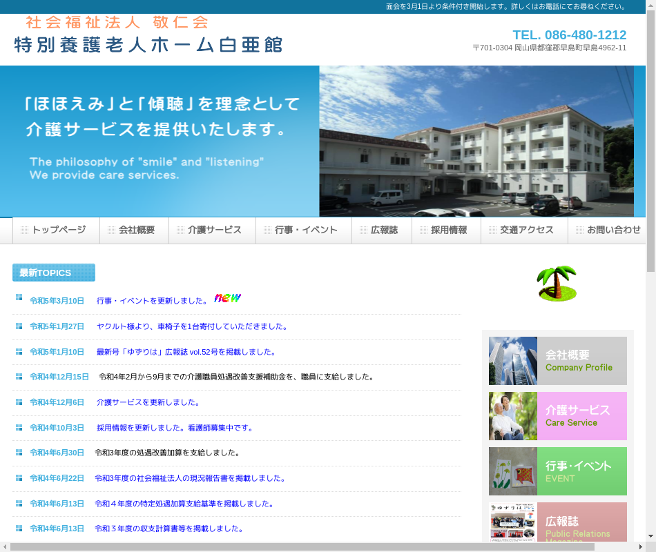 | 事業内容 | 通所介護(デイサービス)・居宅介護支援事業(ケアサポート)、内科・小児科、訪問リハビリテーション |