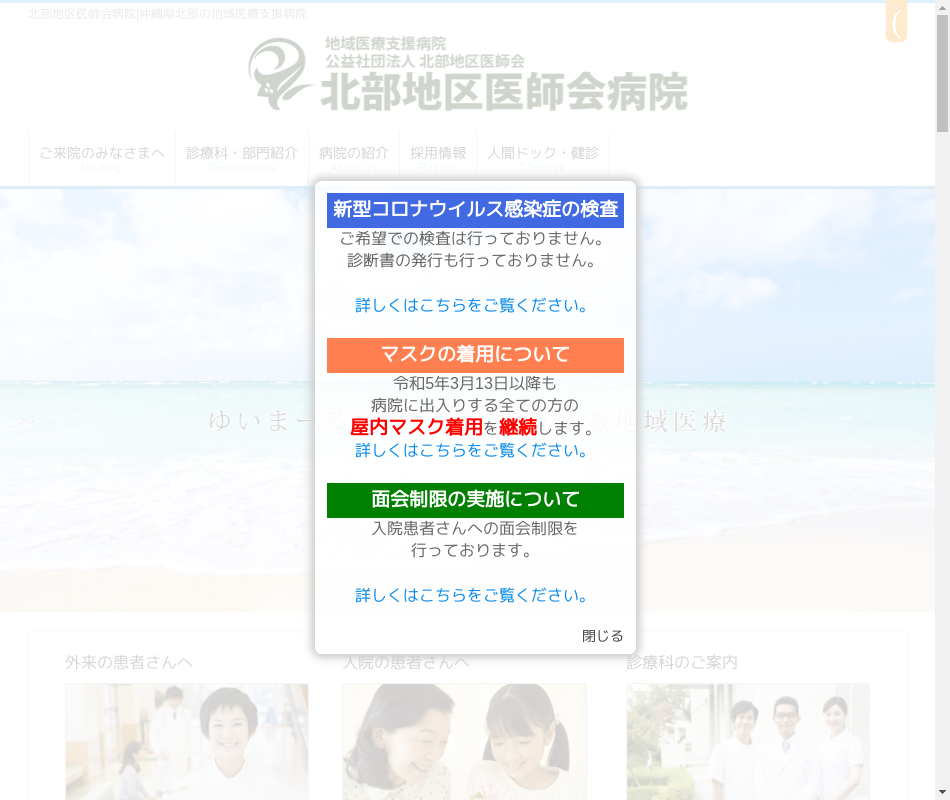 | 事業内容 | 北部地区医師会病院(呼内・消内・内泌・消外・乳外・整外・救急・病理・放射線・皮膚・麻酔・リウマチ・精神・心療・循内・心外)ちゅら海クリニック(透析・漢方・精神・心療) |
