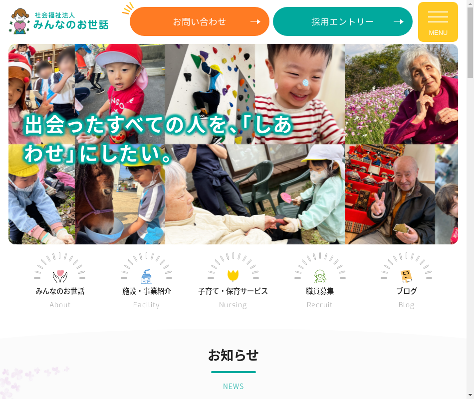 | 事業内容 | 通所介護事業・訪問介護事業・居宅介護事業・有料老人ホーム運営事業、保育所、短期入所、福祉有償運送 |
