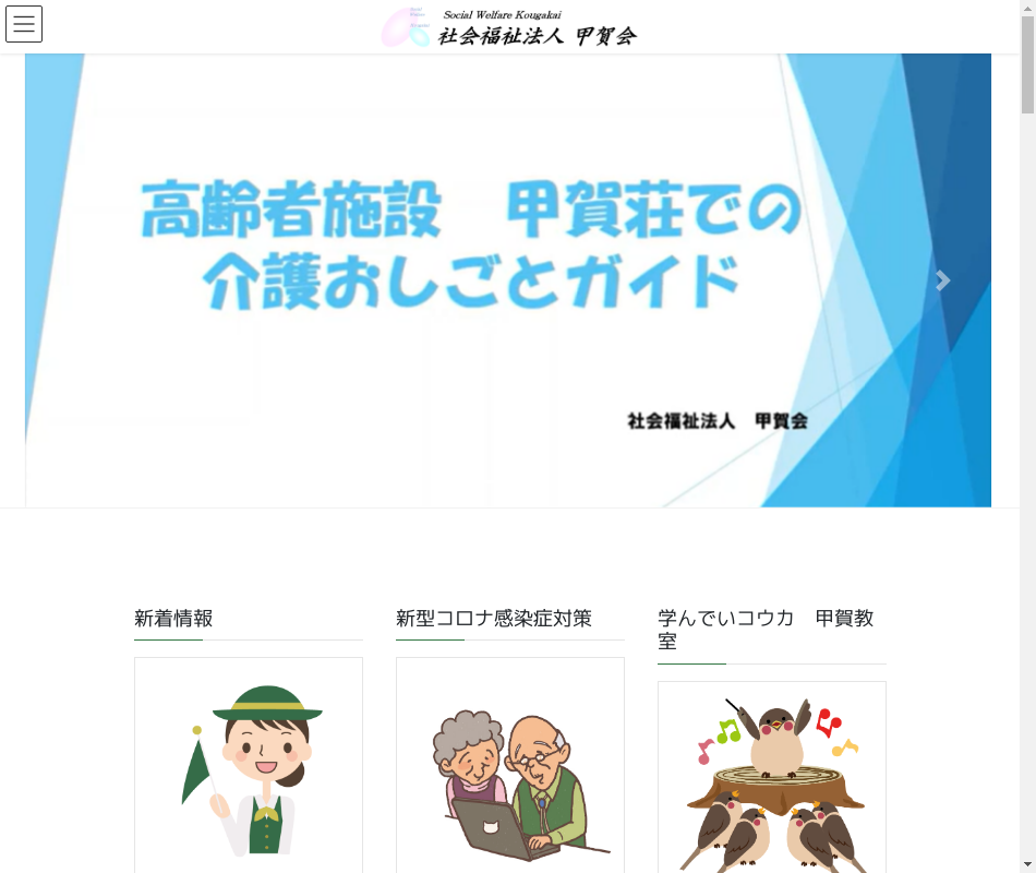 | 事業内容 | 特別養護老人ホーム・短期入所生活介護事業所・デイサービスセンター・小規模多機能型居宅介護事業所・居宅介護支援センターを運営しています。詳細はHPをご覧ください。 |